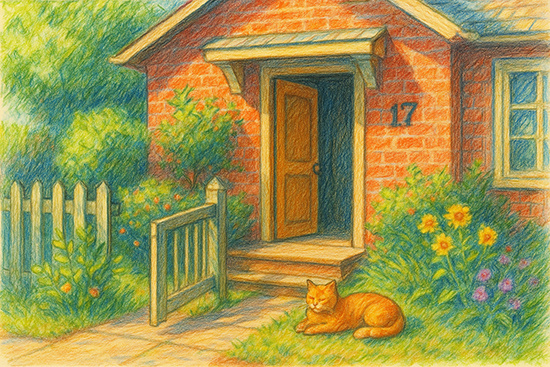 Дом семнадцать оказался аккуратным, с ухоженным палисадником. Калитка была открыта, как и входная дверь. На крыльце лежала рыжая кошка и мурлыкала на солнышке.