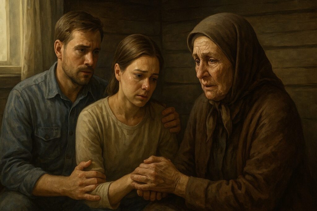 Она вздохнула, вышла из машины. Ноги не хотели идти, но Алексей взял её за руку, и она пошла. В доме пахло печным дымом и сушеными травами. На столе стояли нетронутые пироги, самовар пыхтел в углу. А у окна, на лавке, сидела Дарья Петровна и плакала — тихо, по-стариковски, утирая слезы краем платка.