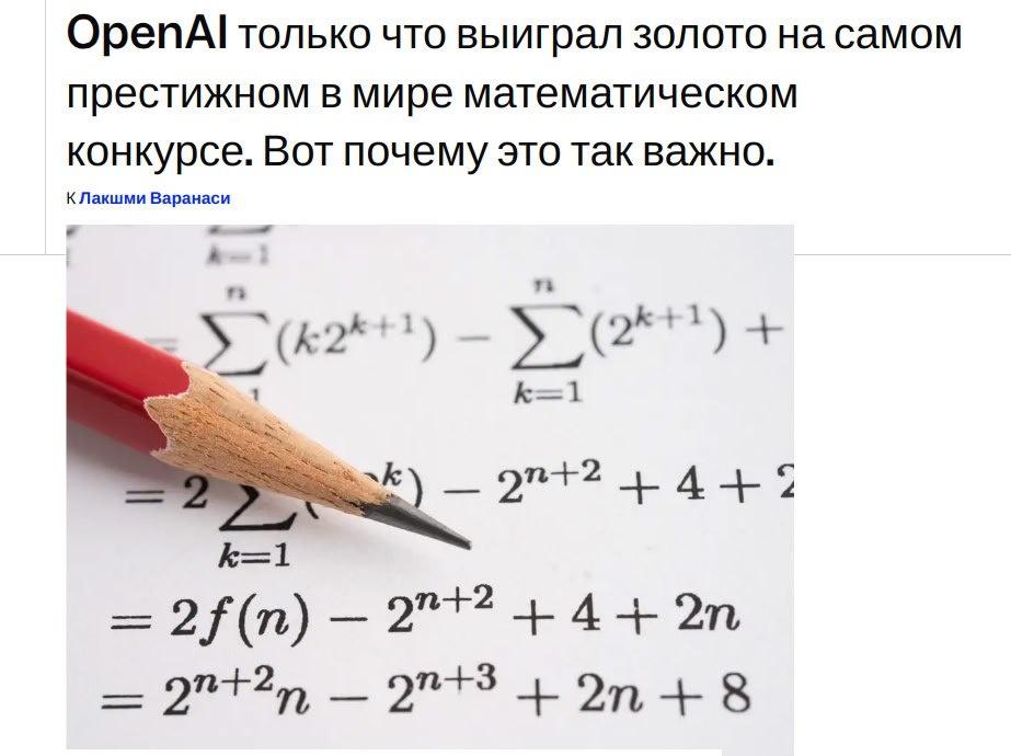 Год назад ИИ-лаборатории тестировали модели на школьной математике. Питер Тиль говорил, что ИИ понадобится минимум три года для решения задач американской математической олимпиады.