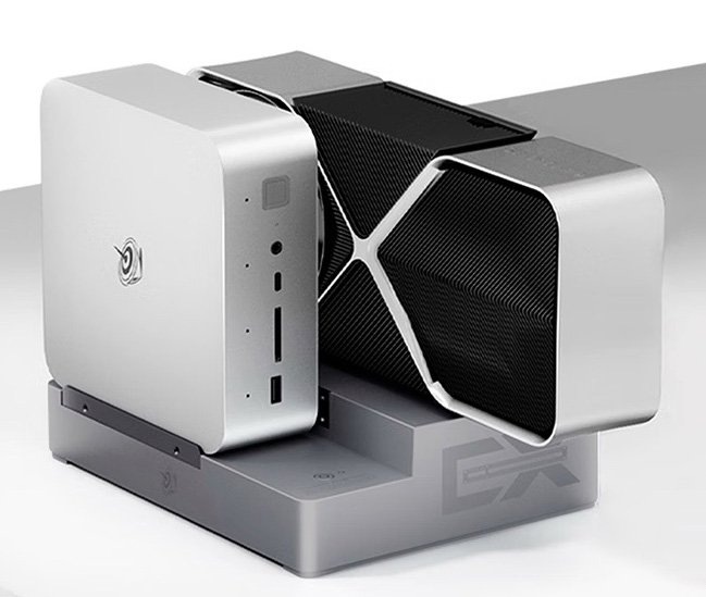 Важной отличительной чертой этой модели является присутствие двух 10-гигабитных Ethernet-портов, расположенных на задней панели. Кроме того, в нижней части корпуса находится слот PCIe 5.0 x8, предназначенный для установки дискретной видеокарты. Для подключения графического ускорителя используется специализированная док-станция.
