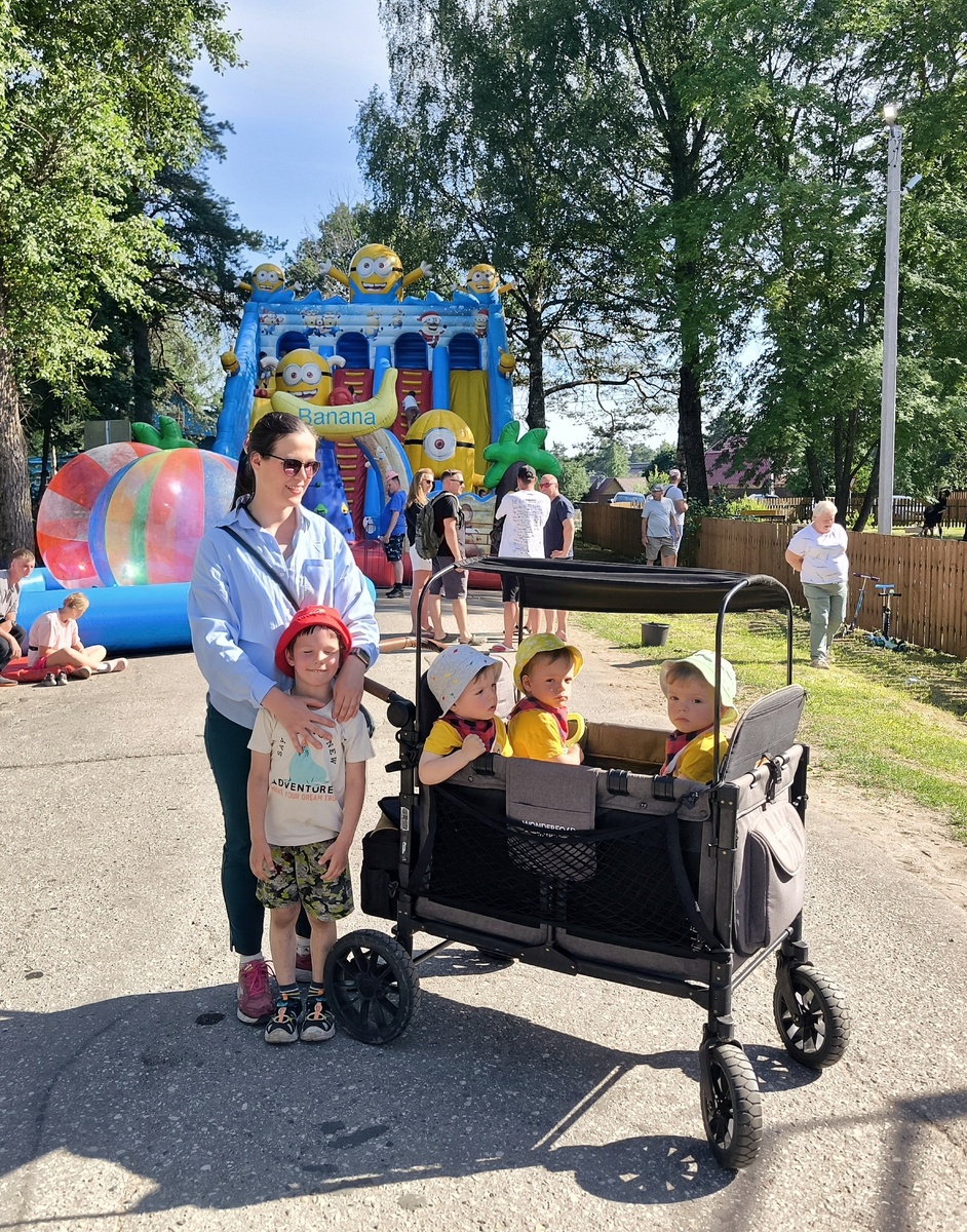 Всем доброго летнего дня 🤗 ! сегодня будет юбилейный выпуск, моя 100-я публикация! Признаюсь, что я сама бывает перечитываю свои статьи 😁, смотрю фото, вспоминаю какие-то события. Оказалось, что очень полезно иметь такой дневничок, жаль только редко получается сейчас писать. Особенно видео люблю пересматривать, теперь уже вместе с тройняшками. Они с большим интересом смотрят как были совсем маленькими и смеются над собой. Сегодня расскажу, как мы с детьми сходили на праздник – день поселка. В этом году красивая дата – 101 год исполнился нашей любимой деревне. В этот день многие жители и гости устремились в центр. Когда еще будет такая прекрасная возможность увидеть друзей, знакомых, пообщаться и хорошо провести летний день. С погодой повезло, обошлось без дождя и ветра. Начались праздничные активности с самого утра, но мы смогли придти только к 16 ч, сразу после дневного сна малышей. Получилось к началу праздничного концерта. Пришли большим составом. С нами пошла бабушка, и у мужа ка