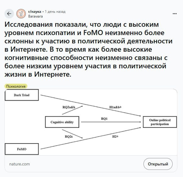 Сингапурские исследователи покопались в мозгах и выяснили: именно те, у кого с соображалкой проблемы и психика шатается, чаще всех устраивают политические разборки в комментах и тянут одеяло на себя в любом споре.