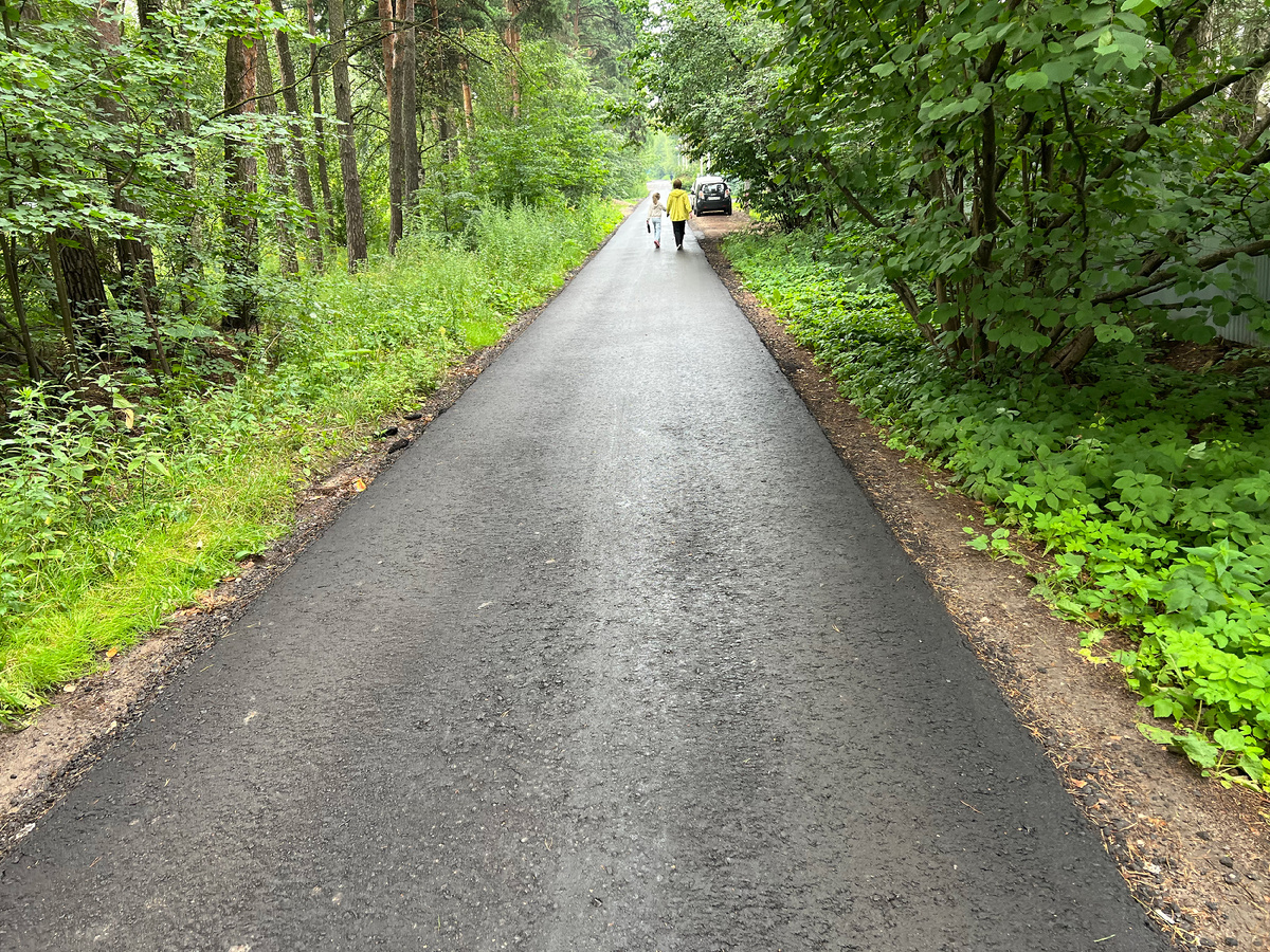 В Одинцовском районе кто-то выиграл в лотерею и укатывает весь район в новый асфальт, включая свежие и абсолютно исправные тротуары из плитки вдоль шоссе и во дворах. Дело оленевода, как говорится, живет и пошло в народ. Но сегодня речь не про тротуары, а про асфальтовые дороги, до которых, получается, добралась первая беда России, к которой смело относим и заказчиков в администрации, и исполнителей. То есть, первая беда начала делать вторую... С тротуарами понятно — власти поняли, что на них не заработаешь и плитка слишком долго лежит и не портится — надо в асфальт все укатать. Он и на жаре вонять будет, и быстрее потребуется ремонт. Приз в лотерее Заказ администрации настолько богат хорош, что укатывают в асфальт даже второстепенные дорожки и дублеры. Например, это дублер Можайского шоссе вдоль участков в районе ВНИИССОК. Дорога активно используется для въезда и выезда из поселка на Можайку. Встречные разъезды здесь случаются не каждую минуту, но они все же случаются. А теперь предс