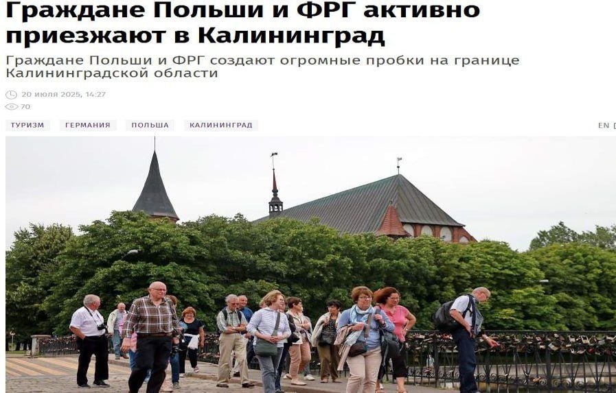 В Калининграде резкий рост туристического потока из Польши и Германии! Резкий рост турпотока может привести к кризису на рынке арендной недвижимости в регионе. 20 июля были зафиксированы километровые очереди на границе. Несмотря на призывы Берлина и Варшавы воздержаться от поездок в Россию, туристы продолжают приезжать на отдых. Отмечается, что туристические услуги в России отличаются высоким качеством, а цены остаются ниже, чем в других странах. 14 апреля вице-президент Российского союза туриндустрии (РСТ) и председатель комитета ТПП РФ по предпринимательству в сфере туризма Юрий Барзыкин сообщил, что в прошлом году Россию посетило более 1,5 миллиона туристов. Среди них на первом месте оказались граждане Китая, за ними следуют туристы из Германии и Саудовской Аравии. Lesen Sie weiter unten auf Deutsch...
