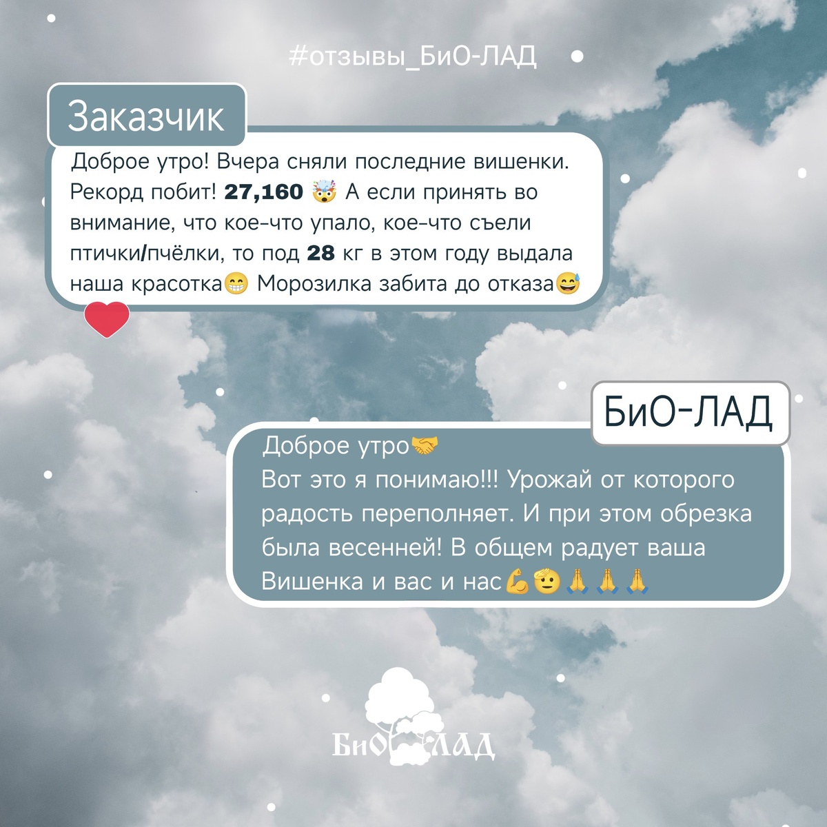 Отзывы случаются всегда неожиданно и тем они еще более приятные ☺️ Так и здесь: дорогие Заказчики поделились (практически буквально 🙊) своим богатым урожаем вишни 🍒 🤤 И это всего лишь с одного дерева 😲 2⃣8⃣ кг! ☝️ (И это еще после обрезки) Мы в приятном шоке! И уверенно передаем Вам слюновыделительную эстафету 😁 Пусть сейчас не конец сезона, но комментарии уже открыты для Ваших огородных - хваст #Работа_БиО_ЛАД #отзывы_БиО_ЛАД