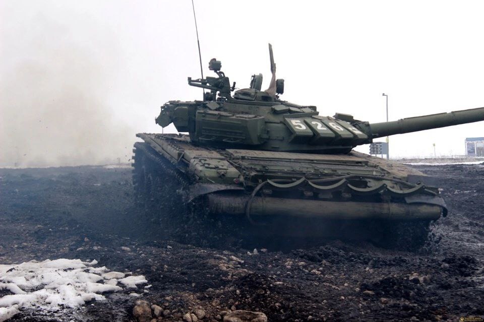 Российский основной танк Т-72Б обр. 1989-го года на полигоне «Тарское» во время учений МО Южной Осетии, февраль 2017-го года. (@military_world_channel)