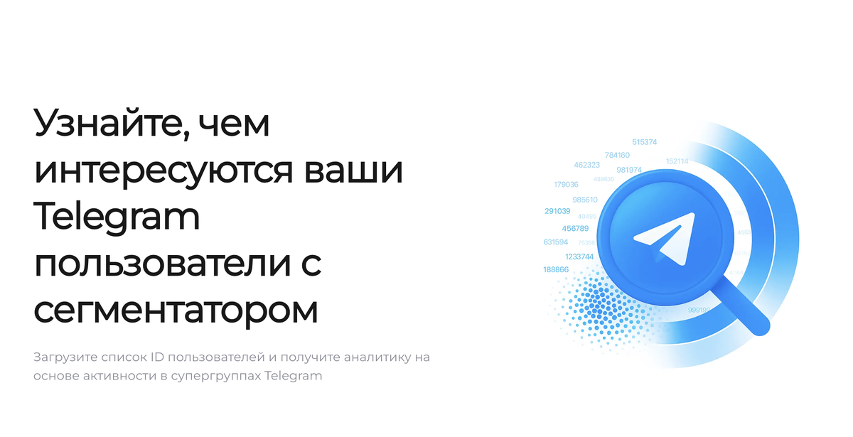 Большинство покупают или собирают Telegram‑трафик, не понимая реальных интересов людей. Подписки и просмотры — поверхностный шум. Быстрая валидация интересов по списку ID до масштабирования экономит бюджет. 1. БОЛЬ Вы вливаете деньги, смотрите на подписки и просмотры, строите гипотезы — но не видите скрытые интересы и неожиданные ниши. Решения принимаются “на ощущениях”. Риск: масштабируете нецелевой поток и закрепляете ошибку. 2. Популярные подходы — почему мимо Ни один из этих способов не даёт распределение интересов и сегменты рабочего размера. 3. Как выглядит “валидированный” трафик 4. Чеклист самодиагностики 5. Наш подход (упрощённо) 6. Кейсы раннего доступа (качественные) 7. Что даёт полный отчёт 8. Мгновенные применения Реклама: выделяете сегмент → look‑alike или прямой таргет (где возможно).