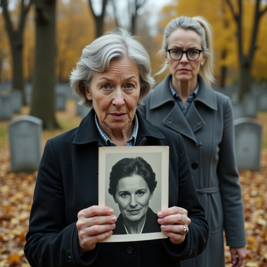 В тот день на кладбище было особенно тихо. Октябрьский ветер гонял жёлтые листья между памятниками, а редкие посетители торопливо несли цветы к могилам родных. Валентина Петровна шла по знакомой дорожке, когда вдруг остановилась как вкопанная. На соседней могиле, в двух метрах от захоронения мужа, красовался новый памятник. Чёрный гранит, золотые буквы, а в центре... её собственная фотография.