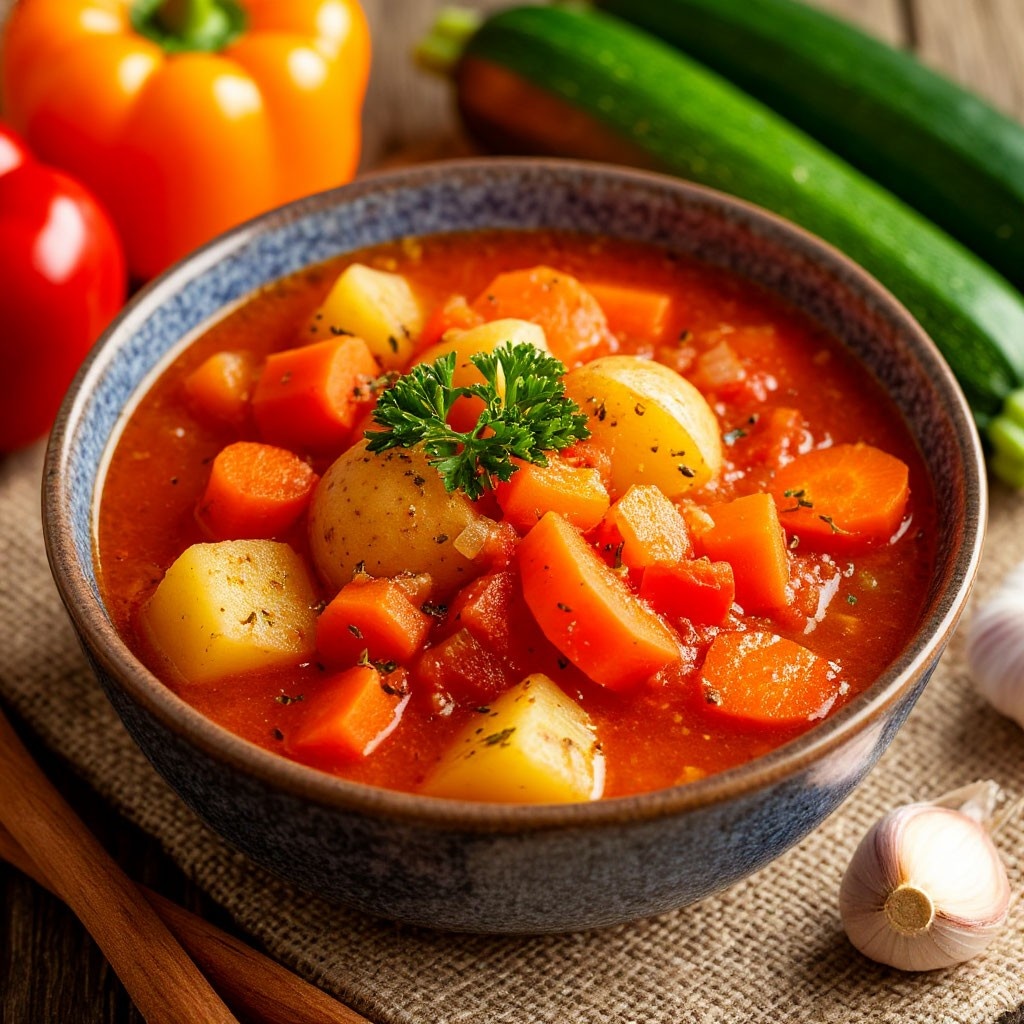 Овощное рагу – отличный способ создать что-то вкусное и полезное из простых ингредиентов. Овощи богаты витаминами, минералами и клетчаткой, что способствует улучшению пищеварения и укреплению иммунной системы. А ещё рагу из овощей содержит мало калорий, что делает его отличным выбором для тех, кто следит за весом. Его можно есть как основное блюдо, особенно в тёплое время года или подавать как дополнение к мясу или рыбе. Что нам понадобится: Как готовить: 1. Картошку чистим и режем кубиками, примерно по 2-3 сантиметра. Морковку можно кружочками, полукружочками – как душа пожелает, лишь бы не слишком толсто. Сладкий перец разрезаем пополам, вычищаем семена и режем соломкой. Лук мелко-мелко шинкуем, чтобы он хорошо прожарился и не чувствовался большими кусками в рагу. Чеснок либо пропускаем через пресс, либо тоже мелко режем ножом. Кабачок режем кубиками или полукружочками, как и морковку. Молодые кабачки можно не чистить. 2. Берем глубокую сковороду или кастрюлю с толстым дном (что