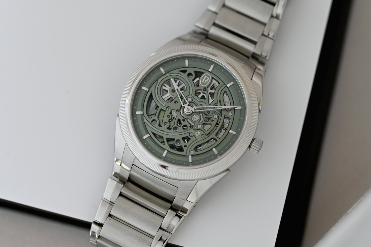 Tonda PF — воплощение спортивной элегантности Parmigiani Fleurier, а модель Tonda PF Skeleton — ещё более яркий пример. Последнее издание отличается полностью скелетонизированным циферблатом и механизмом в красивом сланцево-зелёном цвете.