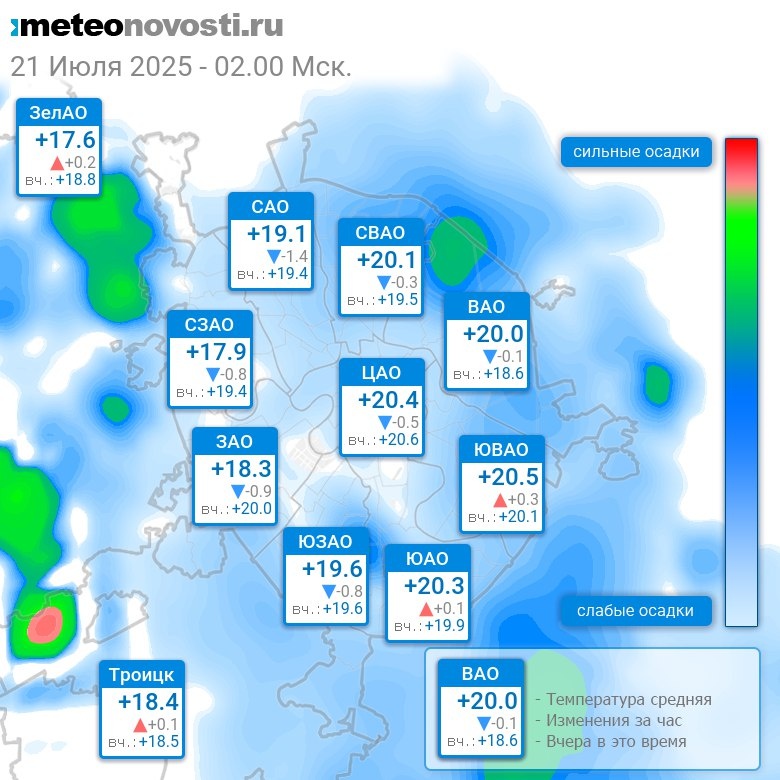 В 2:00 в Москве было от +17.2°C до +20.9°C, средняя температура +19.4°C #погода #Москва #лето #температура #21июля #понедельник