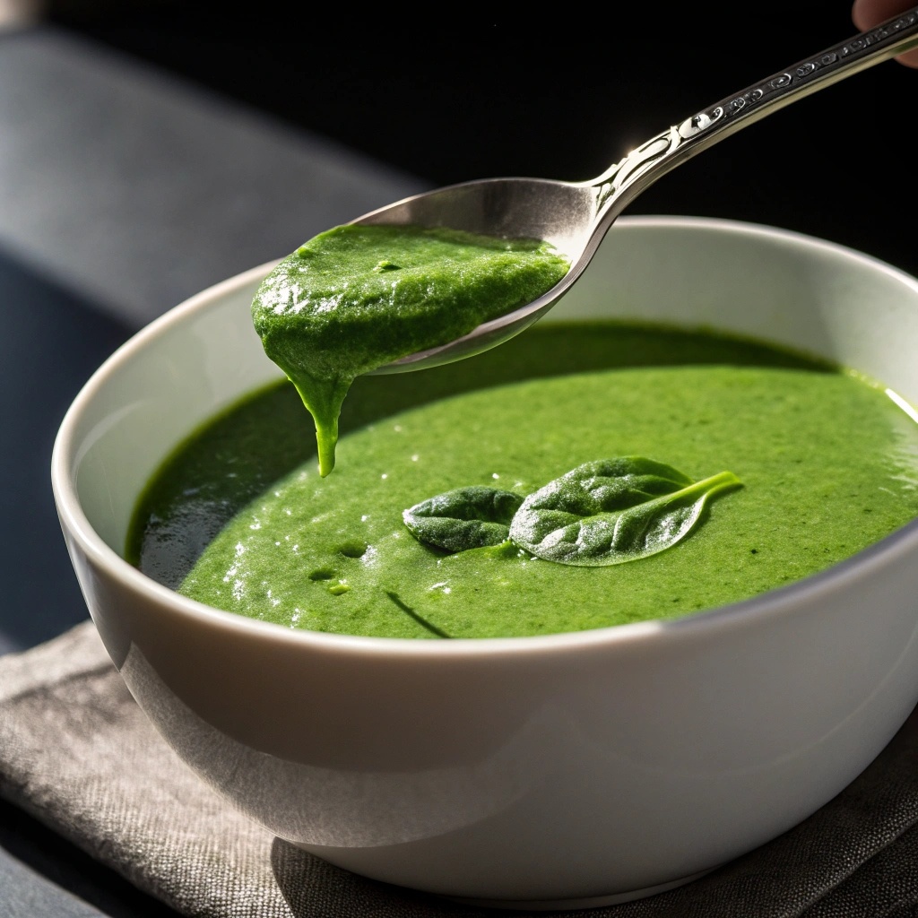 - Подача. Разлейте по тарелкам, украсьте листиком шпината.