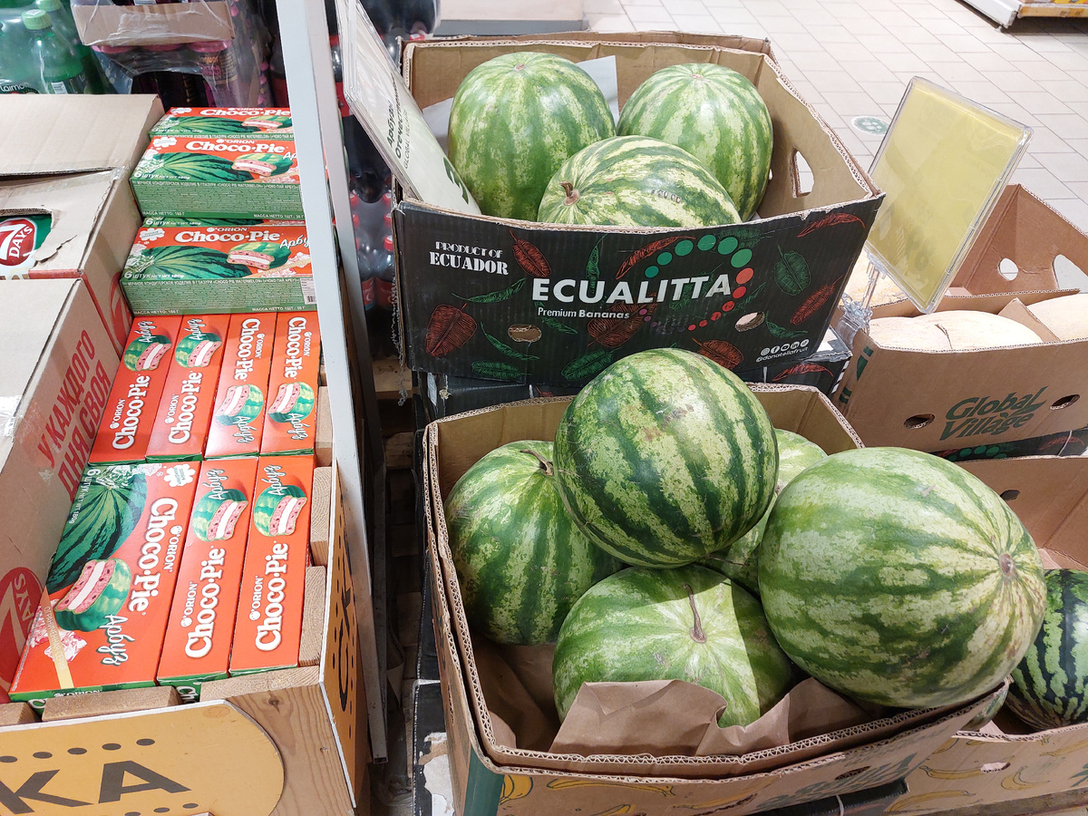 Давненько я не вела свою любимую рубрику по дегустации редких продуктов. Но тут подвернулся случай: хитрые мерчендайзеры Пятерочки положили новый вкус чокопая так, что его нельзя было не заметить и сложно не захотеть. Аккурат рядом с арбузами лежала лимитированная серия арбузных чокопаек. Меня поразило как находчиво их расположили. Это так просто и в то же время так гениально! Поскольку арбуз у меня дома уже был, я обратила внимание именно на сладости, а потом и на цену. Мало того, что необычный вкус, так ещё и акция! "Надо брать", - подумала я. Дома, как водится, провела распаковку. М-м-м. Приятный химический аромат арбуза, имитация арбузной корки снаружи и семечек внутри. Ах да, и ещё пометка на коробке: "попробуй охлажденным". Убираю несколько штук в холодильник, а одну пробую сразу. Вкус знакомый до безобразия. Напоминает арбузную жвачку, видимо, ароматизаторы те же. Через несколько часов пробую охлажденную версию. Вау, так и правда лучше! Хотя в целом практически то же самое. Про