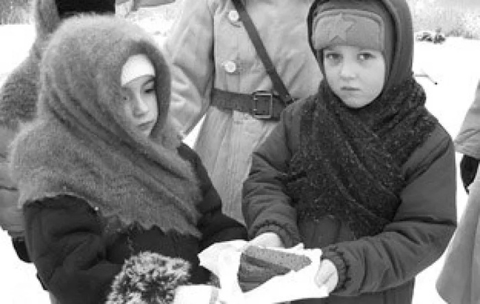 На маленьком старом чемодане сидит большеглазая худая девочка, лет пятнадцати, в светлом женском пальто с чужого плеча, надетом поверх мужского синего вязаного свитера, и детской вязаной шапке. Она мерзнет пряча руку в рукава пальто. Рядом с ней стоит военный с толстым блокнотом в руке.