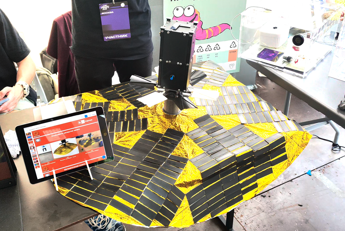 На бескрайних полях VK Fest 2025 в Москве специалисты Сколтех помимо невероятных многофункциональных дронов MorphoGear (обзор) представили разработки, ориентированные на космическую отрасль. В честности молодые учёные продемонстрировали бескаркасную солнечную панель, предназначенную для использования на космических летательных аппаратах и станциях. Представленная модель солнечной панели для космических аппаратов реализована на принципе бескаркасной конструкции. Это позволяет, во-первых, уменьшить общую массу конструкции, поскольку доставка на орбиту каждого килограмма любого из объектов обходится весьма не дёшево. А во-вторых, бескаркасная конструкция обеспечивает компактность самого устройства во время транспортировки. Изначально, к моменту доставки солнечной панели, устройство складывается, как оригами, принимая компактную форму. По прибытии к месту назначения, конструкция с помощью центробежной силы разворачивается в космическом пространстве и обеспечивает космический аппарат энерги
