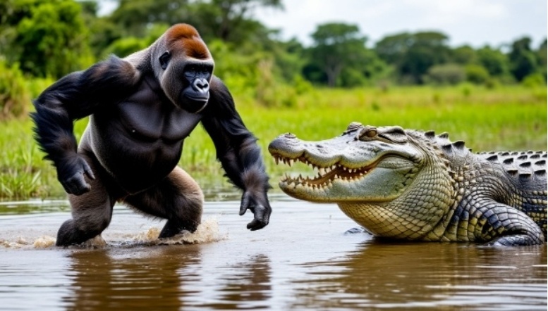 Гориллы имеют небольшое преимущество в скорости перед крокодилами