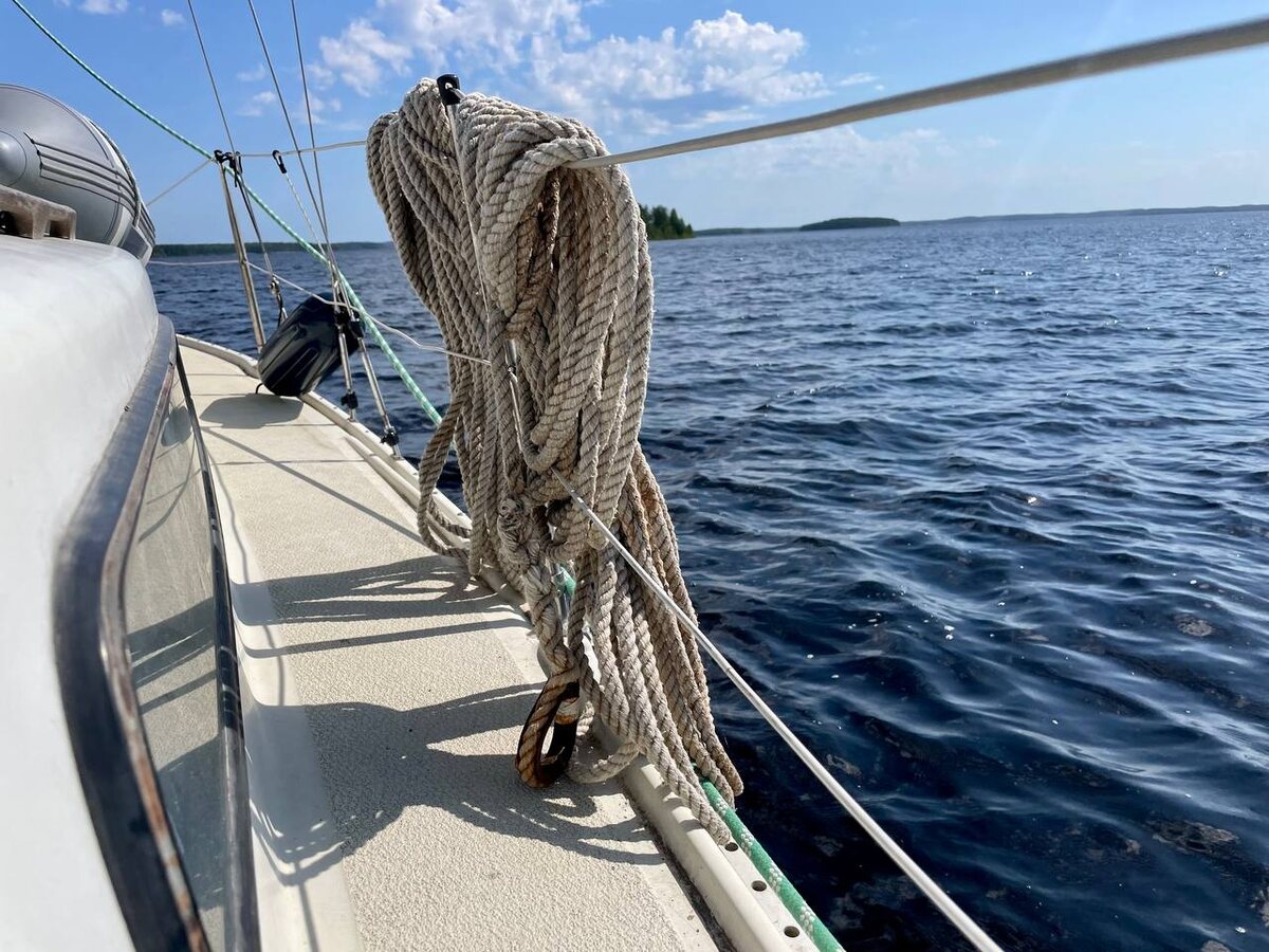 20.07.2025 Почти все Выгозеро прошли под парусом под левым галсом на скорости ~ 8-9 км/ч. Погода ясная, но ветер холодный. Сегодня снимать куртки не хотелось. По дороге в Белое мы проходили Выгозеро в дождь. На солнце оно производит куда более приятное впечатление. Отличное место для отдыха и путешествия по многочисленным островкам (но не на килевой яхте). В Маткозере чуть не наткнулись на сеть. Какие-то «умельцы» перекрыли ей практически весь судовой ход. Вовремя увидели. Обошли. Вообще, сетей по каналу много. Но обычно за пределами фарватера. Сегодня прошли только 9 и 8 шлюзы. Встали на ночь за островом недалеко от выхода из водораздельного канала. Онегу отложили на завтра.