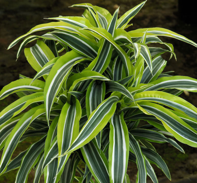 ✔ Драцена деремская – темно-зеленые листья с белыми полосами.
