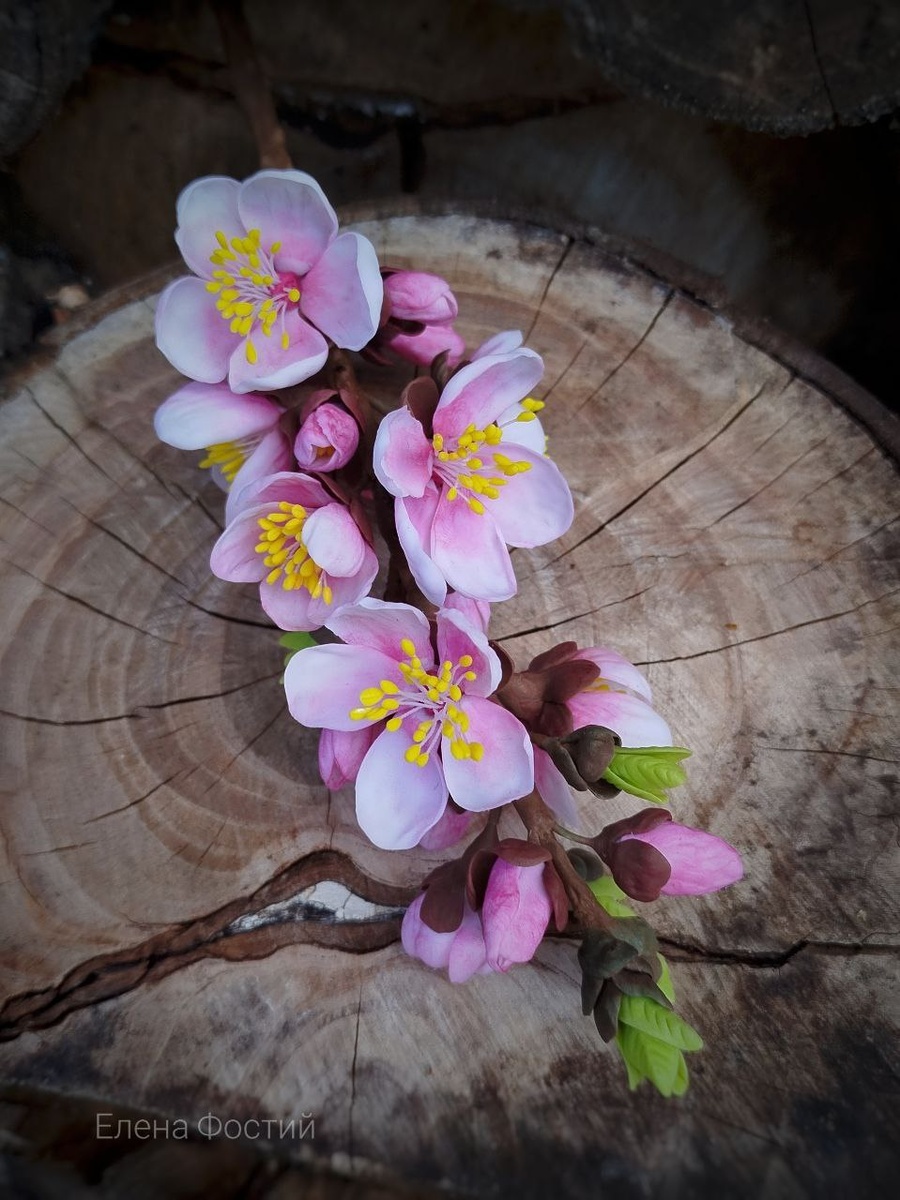 Веточка цветущего абрикоса из холодного фарфора. В рамках курса "Супер Весна" с Миром лепки #мирлепки_весенниецветы с @tatjana_irzina #handmade_elenaf #ручнаяработа