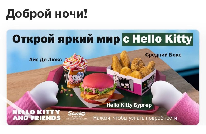 ⚡️Всё, коллаба стартовала: Hello Kitty уже во «Вкусно — и точка