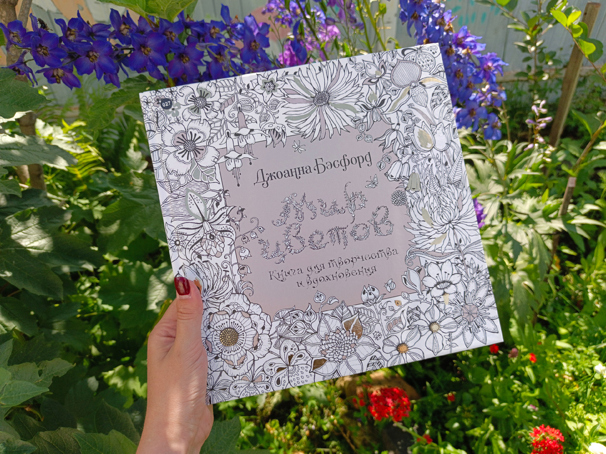 Всем привет! Я приехала к родителям в деревню на неделю. Здесь очень хорошо: свежий воздух, ягоды, цветы. Детям очень нравится. Раздолье) Гуляют весь день. А я, кажется, совсем отвыкла от деревенской жизни))) Всё моё детство прошло именно здесь. Много приятных воспоминаний 🥰 В деревне летом всегда много работы: прополка гряд, полив огорода, сбор урожая. Поэтому взяла с собой только одну раскраску "Мир цветов" Джоанны Бэсфорд и фломастеры. Думала, что вообще ничего не раскрашу, но вот вчера был дождливый день и я начала одну иллюстрацию в этой книге. Как проходит ваше лето?)