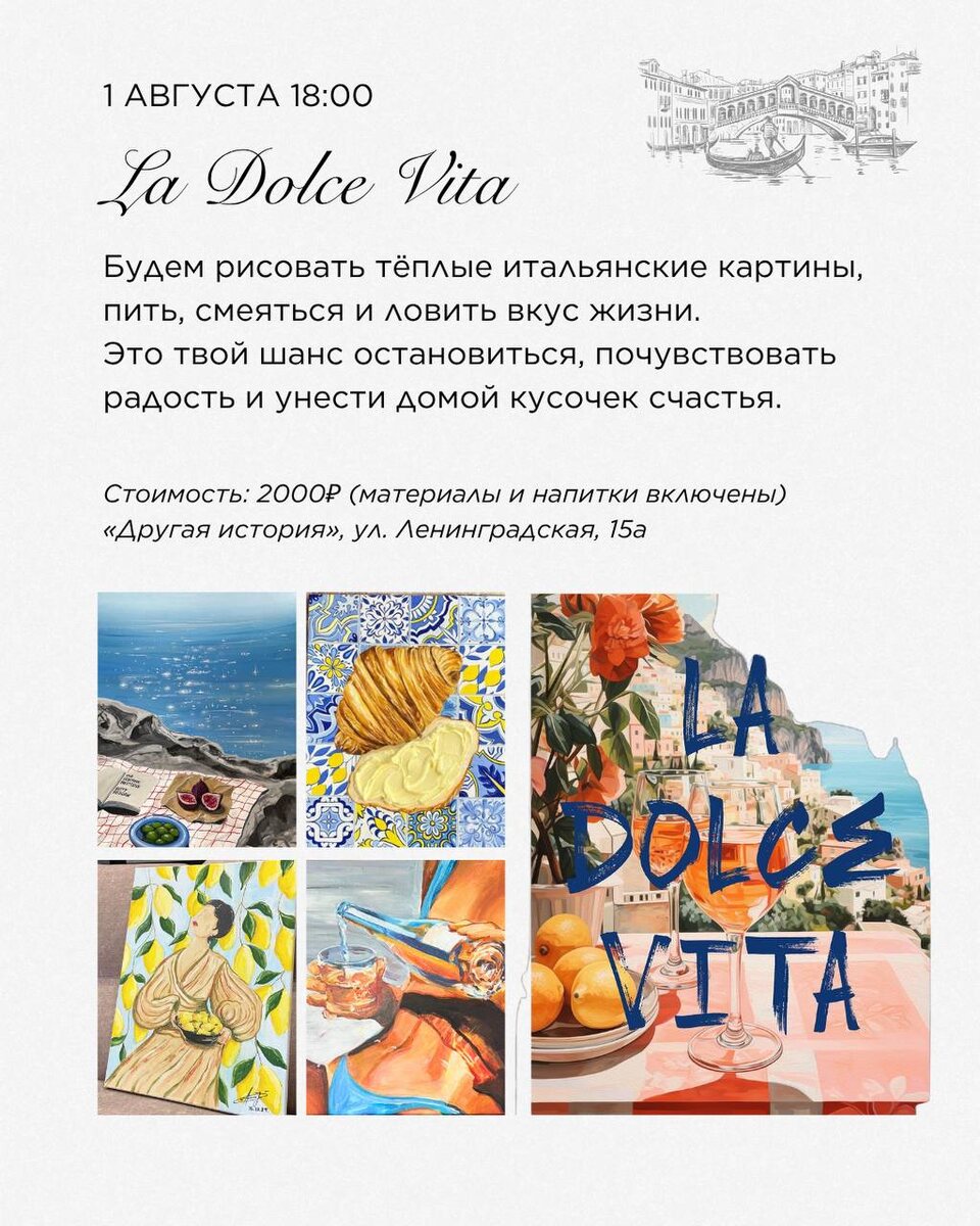 «Let’s Art Party» открывает новый сезон Целая череда арт-вечеринок на любой вкус! Главное — ваши впечатления и чувства, которые вы унесёте с собой. А ваши картины? Они станут ещё красивее и по-настоящему вашими. Все подробности в карточках. 💥Бронирование: 89144880028 или @lets_art_party #Афиша Предложить публикацию: @zabkulisye_bot