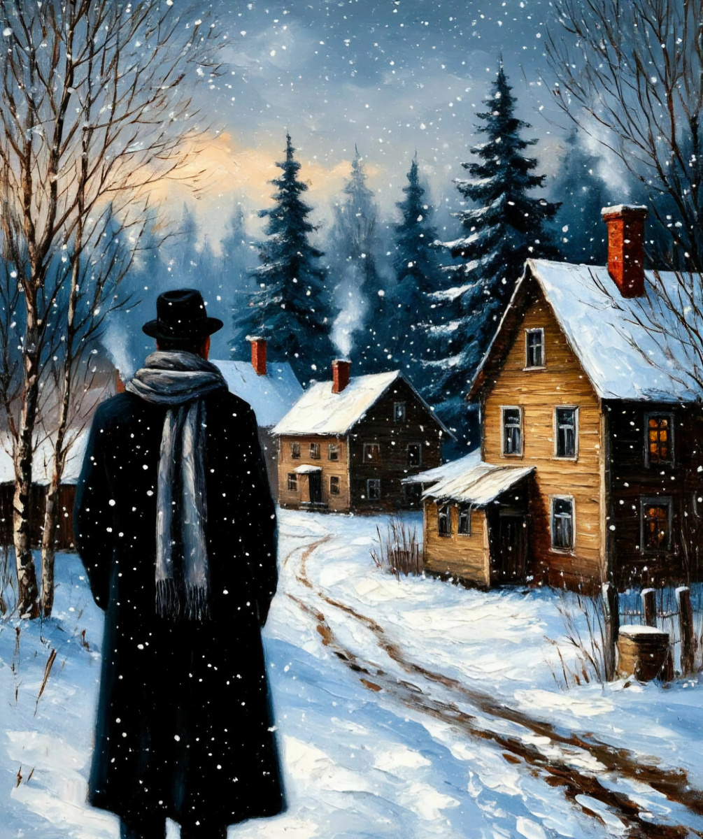 На краю империи Тихо падал снег Здесь, в уединении, Коротал свой век Человек без памяти, Дома и тепла, А в груди зияющая Черная дыра. Человек без сердца, И сквозняк в груди Закрывает шарфик Тонкий. Впереди Белые метели. Долгая зима Заметет дороги Заметет дома. Чёрные одежды. Взглядов сторонясь, Он пройдёт по улицам, Словно тень, крадясь. Высохшие очи В небо обратит Снег тихонько тает На щеках, блестит.