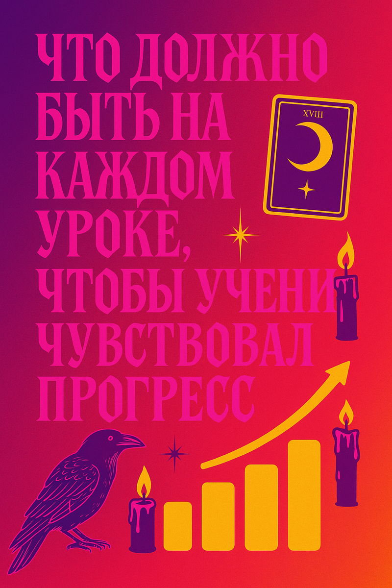 Давайте честно: никто не хочет тратить время на занятия, после которых остаётся только приятное общение и вопрос в голове — а был ли смысл? У ученика может быть добрый преподаватель, красивые презентации и интерактив в Миро, но если не ощущается движение вперёд, мотивация уходит. И у него. И у нас. Сегодня разложим по полочкам, что должно быть на каждом уроке, чтобы даже самый тревожный ученик в конце занятия мог сказать: «О, ну я же могу. Получается.» Цель — это не “пройдем Present Perfect”. Это мимо. Цель должна звучать как результат, а не как процесс: Именно достижение маленькой, ощутимой цели даёт чувство прогресса. Представьте, что ученик говорит: «Я понял, как сказать “мне пришлось уехать” — это had to, да?» — вот оно. ✅ В начале урока озвучиваем цель. В конце возвращаемся и сверяемся: получилось? Прогресс — это не когда «всё понял», а когда была задача и он с ней справился. Примеры «мини-побед»: Мы как преподаватели часто недооцениваем эти моменты. А зря — именно такие эпизоды