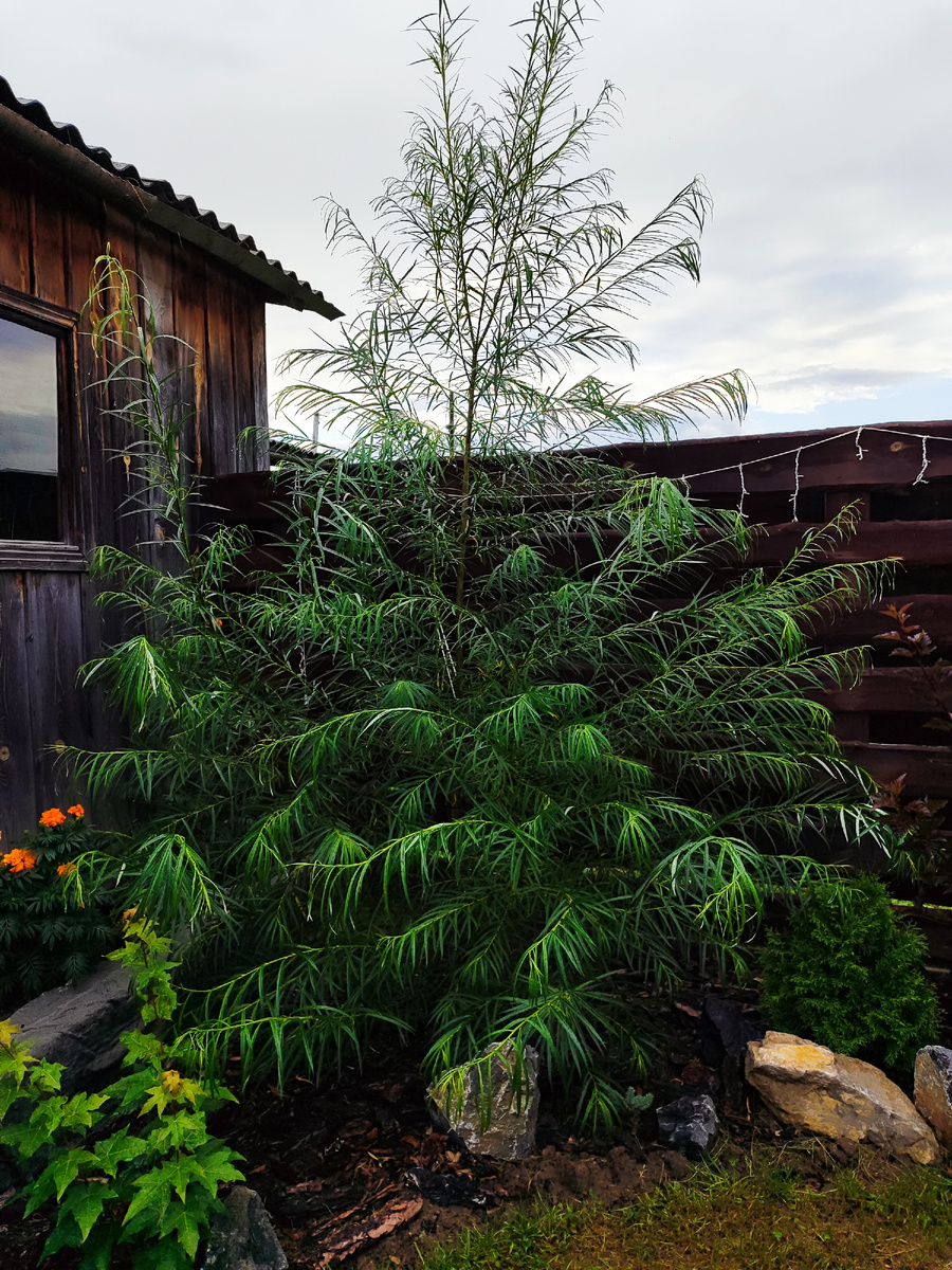 Ива Шверина, растение заключающее в себе одновременно хрупкость, гибкость, стойкость, нежность и силу. Оно вобрало в себя лучшие качества ивы и некую эксклюзивную особенность. Листья узколанцетные или линейные, длиной 8 - 30 см., шириной около 1 см., сверху - зелёные, с нижней стороны - сизые (из-за наличия опушения), осенью - желтеют. Отличная замена бамбуку в нашем климате. На данный момент среди ив, а у меня их восемь, она является жемчужиной коллекции. Без преувеличения. Когда я захожу во двор эта ива в своём великолепии перекрывает все остальные мои многочисленные посадки в "скандинавском моём уголке". Звёздочкой горит)) Почему Скандинавия? Не знаю, ассоциация у меня почему то именно с ней. Камни, отделка деревом, ёлка. Серое низкое небо.. Доброго вам сегодня, мои хорошие. Ива Шверина улучшенная - это сорт ивы уральской селекции (селекционеры: В. И. Шабуров, И. В. Беляева). Названа по имени немецкого ботаника Фрица Курта Александра фон Шверина (1847–1925) из немецкого город