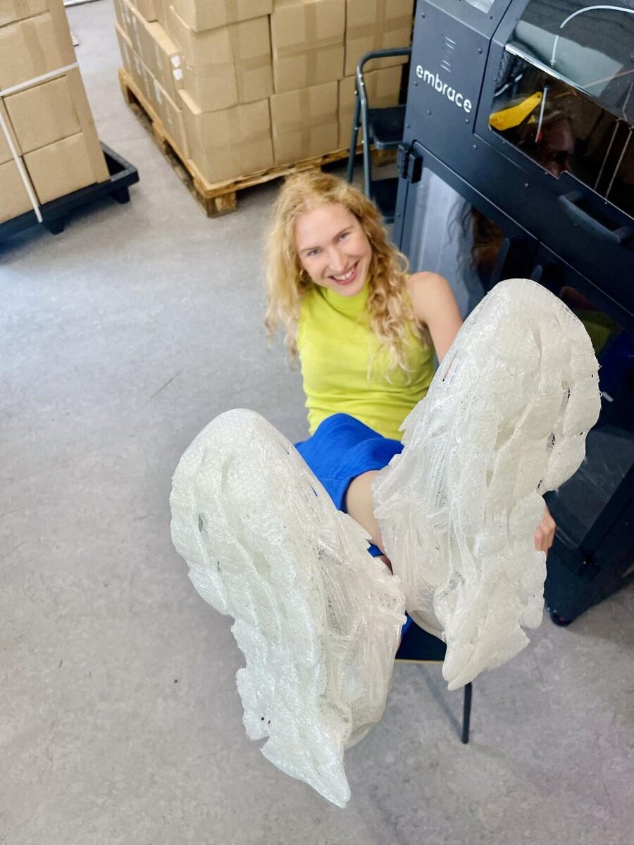 👟Забыл обувь в аэропорту? Напечатай себе новую! Опытные слоеделы заметили, что мы, порой, делимся едкими высказываниями или скрываем за несколькими слоями воодушевленных эпитетов реальное отношение к проектам. Мы стараемся с разных сторон смотреть на проекты, предлагать к обсуждению другую (не популярную) точку зрения, возможно, чрезмерно резонансную. Зачем? Проверить себя и свой проект на востребованность для рынка и готовность инвесторов вкладываться в проект. Обувь. Мы частенько обращали внимание на это явление. Ведь заманчиво намеренно забыть ее, а потом достать из кармана принтер, закачать полюбившийся дизайн, быстро отмасштабировать и напечатать вожделенный товар, в надежде на завидные взгляды модников и модниц… И вот Jeremie Pierre Gay делится 3D-моделью обуви, которая за 10,5 ч печатается на принтере Embrace SeatMaker из материала TPU CreaTech! Очевидно, что аддитивщики поуши влюблены в то, что делают, особенно здесь, убеждая нас в непревзойденном комфорте: ✅ Легкая – всег