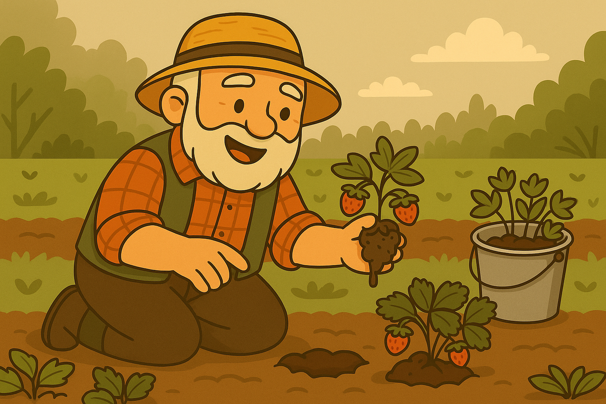 В этот период: Пересаживать лучше молодые розетки с усов первого порядка — то есть те, что расположены ближе всего к материнскому кусту. Они наиболее сильные и урожайные. Семёныч говорит: «Не хватай каждый ус, что растёт. Первый — в дело, остальные — в компост. Слишком много — тоже беда». Перед посадкой клубники важно обновить грядку. Хорошо, если на этом месте раньше росли чеснок, лук, морковь или фасоль. А вот после картошки и огурцов лучше не сажать — риск заболеваний выше. 📌 Почва должна быть рыхлая, водопроницаемая и без свежего навоза! 📌 В тесноте клубника чаще болеет и даёт меньше урожа