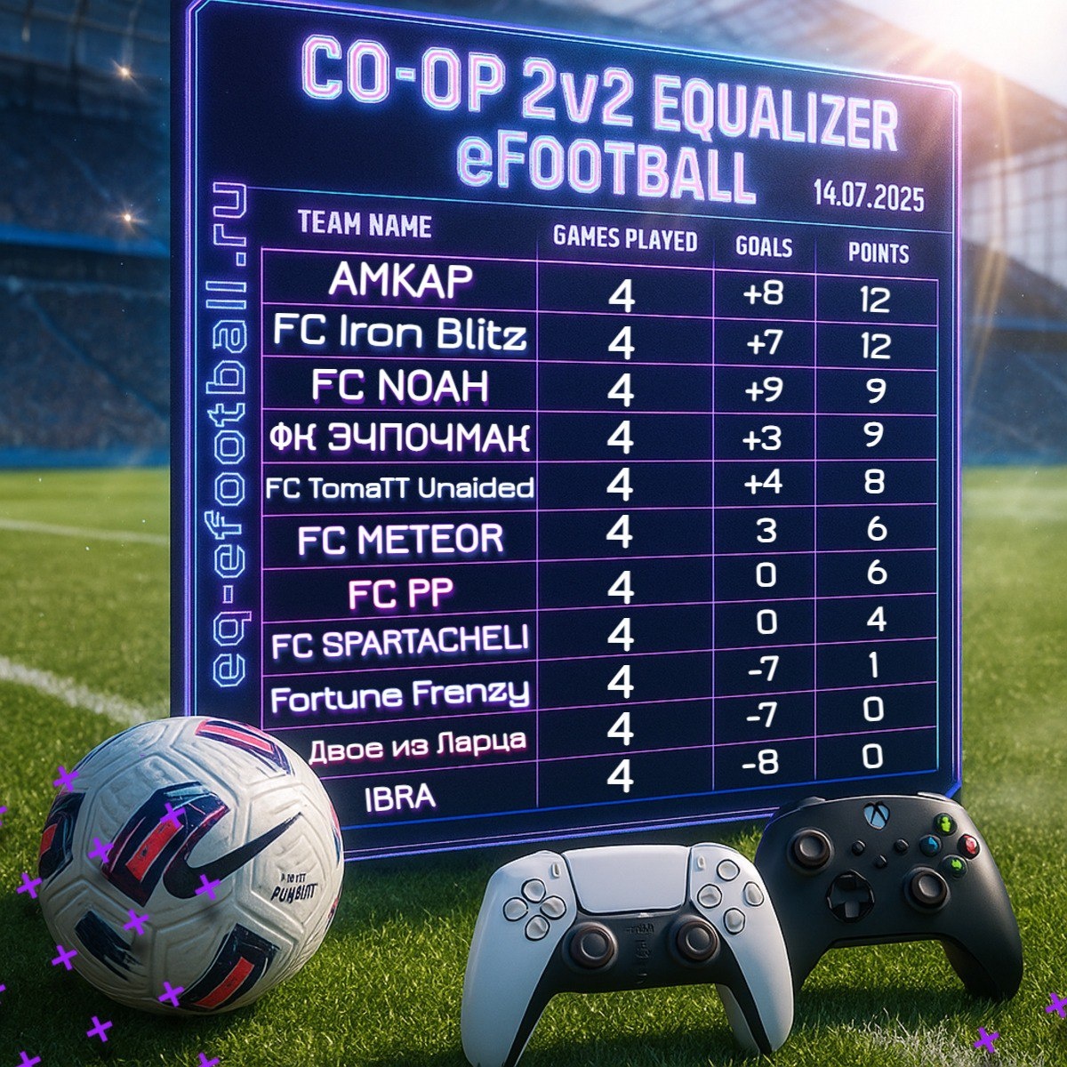 📊 Таблица Лиги КООП 2 на 2 в формате Equalizer eFootball