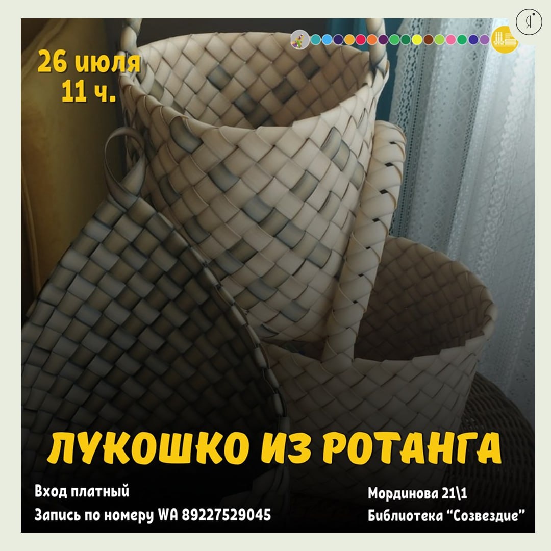 Лукошко из ротанга #ЗаГородом 🍄🍓🍒 Ягодный сезон не за горами А не научиться ли нам плести для этого случая практичное, лёгкое, функциональное, прочное лукошко? Освоим способ плетения из ротанга-ленты, научимся экономно расходовать материал, разберём разных производителей, инструменты, лайфхаки. Материалы предоставляются С собой приносите удобную одежду, перекус и хорошее настроение. 26 июля | 11:00 Библиотека «Созвездие», Мординова, 21/1 +79227529045 Online Якутия | Подписаться