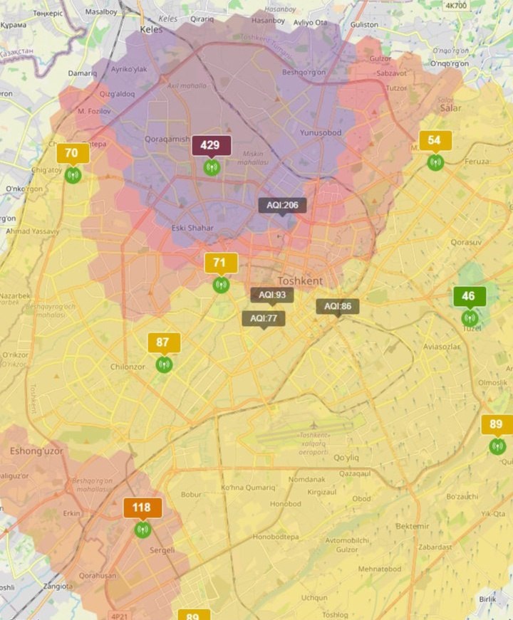 Olmazor tumanida havo ifloslanishining “xavfli” va “o‘ta xavfli” darajasi qayd etildi
