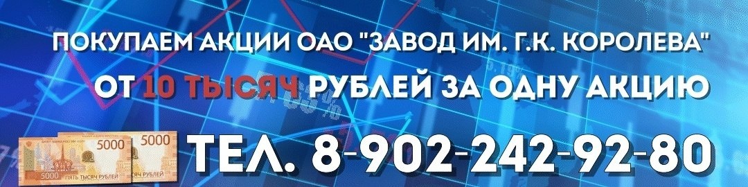 ‼ ПОКУПАЕМ акции ОАО "Завод им. Г.К. Королева"