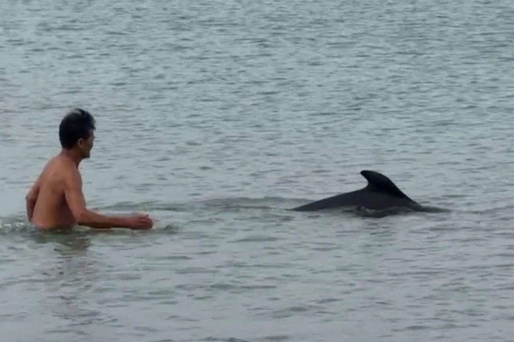 В районе пляжа Cửa Tùng (провинция Куангчи) дельфин подплыл почти к берегу и некоторое время охотно играл с отдыхающими