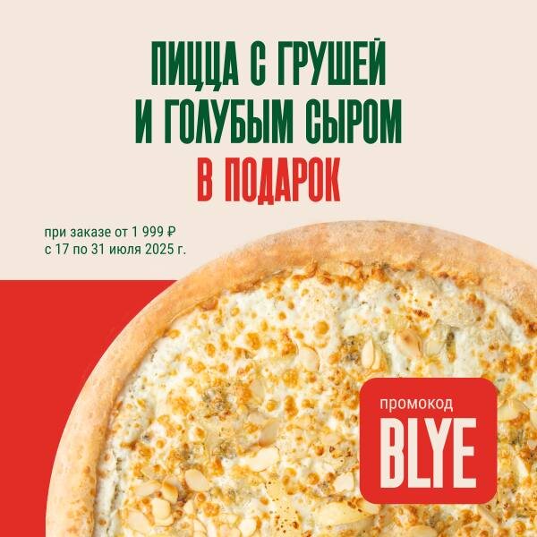 Когда груша встречает голубой сыр — рождается подарок! 🎁 Да, ты не ослышался: эта изысканная пицца может стать твоей абсолютно бесплатно Сделай заказ от 1 999 ₽ с 17 по 31 июля и активируй промокод: 👉 BLYE Пицца сочная, сыр благородный, промокод — простой: papajohns.ru/novosibirsk