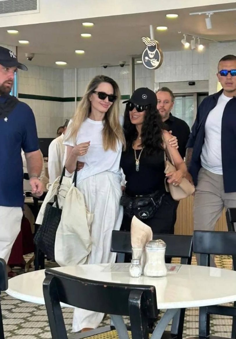 Анджелина Джоли и Сальма Хайек, как простые смертные, выбрались на чашечку кофе в совершенно непафосное кафе Gran Café La Parroquia в