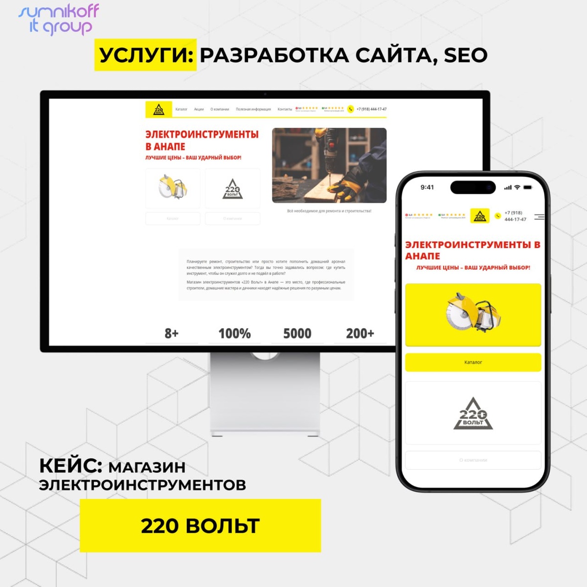 ⚡️ Кейс: разработка и SEO-продвижение сайта 220VOLT 💼 Услуги: — Разработка сайта с нуля на WordPress — SEO-продвижение 🌐 anapa220volt.ru 🎯 Задача: создать современный сайт-визитку для магазина электрооборудования в Анапе, удобно доносящий преимущества и товары, привлекающий новых клиентов и хорошо ранжирующийся в поиске. ⚙️ Реализация: новая структура (главная, продукция с фильтрацией, акции, о компании, контакты), продающие SEO-тексты, современный дизайн, грамотная структура и внутренняя оптимизация, адаптивность. 📈 Результат: сайт-визитка стал эффективным инструментом, выросло число заявок. 🟡 Sumnikoff IT Group — комплексная разработка и продвижение для вашего бизнеса. 📞 +7 (918) 640-58-44 🌐 sumnikoff.ru