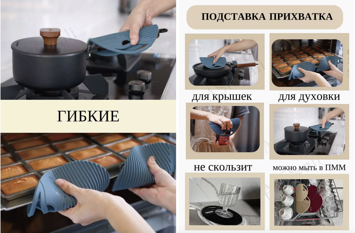 Набор из двух жаропрочных и термостойких подставок помогают защитить руки от горячего, когда готовите на кухне, на мангале и гриле и даже на барбекю. Они также могут использоваться когда нужно достать горячую посуду из духовки или микроволновки или нужно поставить посуду на стол.
