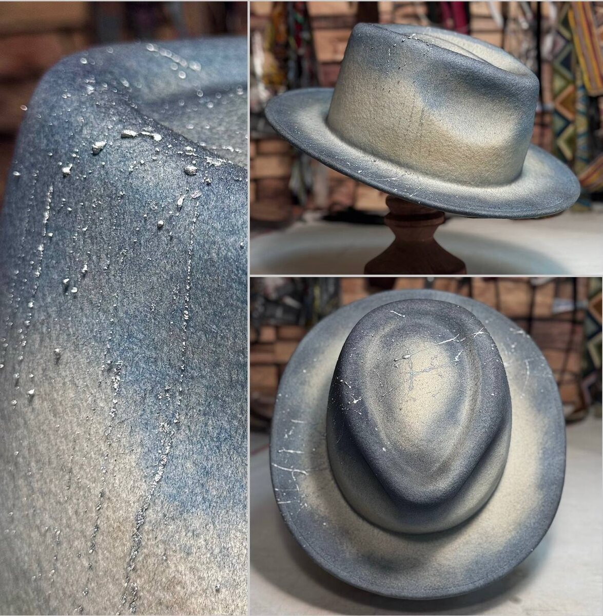 Fedora Denis Space Walker с градиентной тонировкой из белого в синий, усыпанная серебряными каплями. Кстати, это отличный вариант для нежаркой погоды или летних вечеринок под звездным небом)👌 Цена: 14500₽ Бесплатная доставка по РФ Заказать или просто спросить:) #fedora #denis #6см