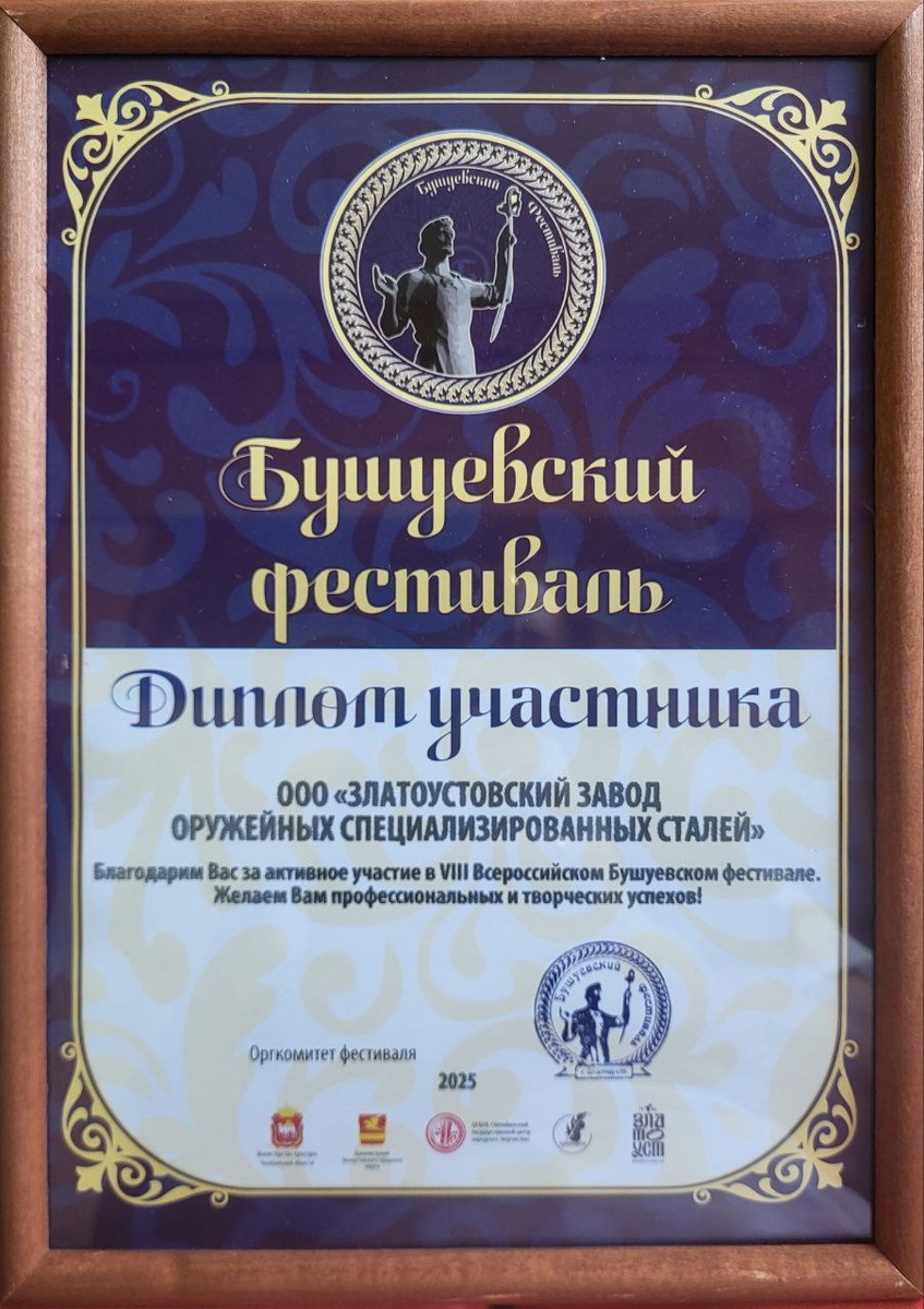 Бушуевский фестиваль-2025 завершен! Огромное спасибо всем, кто был с нами! ❤️🗡️✨ Дорогие гости, друзья и ценители настоящего Златоустовского мастерства! ООО "Златоустовский Завод Оружейных Специализированных Сталей" сердечно благодарит каждого, кто посетил наш стенд на Бушуевском фестивале 2025! Фестиваль закончился, но остались яркие впечатления, теплые встречи и искренняя благодарность за ваш интерес к нашему искусству! ⚡ Спасибо вам за то, что нашли время прийти к нам! ⚡ Спасибо за ваши вопросы, восхищенные взгляды и живой интерес к золотоукрашенной продукции, ножам, кортикам, кинжалам и VIP-сувенирам! ⚡ Спасибо нашим постоянным клиентам, которые снова выбрали нас в 2025-м, как и в 2024, 2023-м и 2022! Ваше доверие – высшая награда. ⚡ Спасибо новым знакомым, открывшим для себя качество и красоту изделий Златоустовского Завода Оружейных Специализированных Сталей! Для нас большая честь быть частью этого легендарного праздника златоустовской гравюры и представлять наше произ