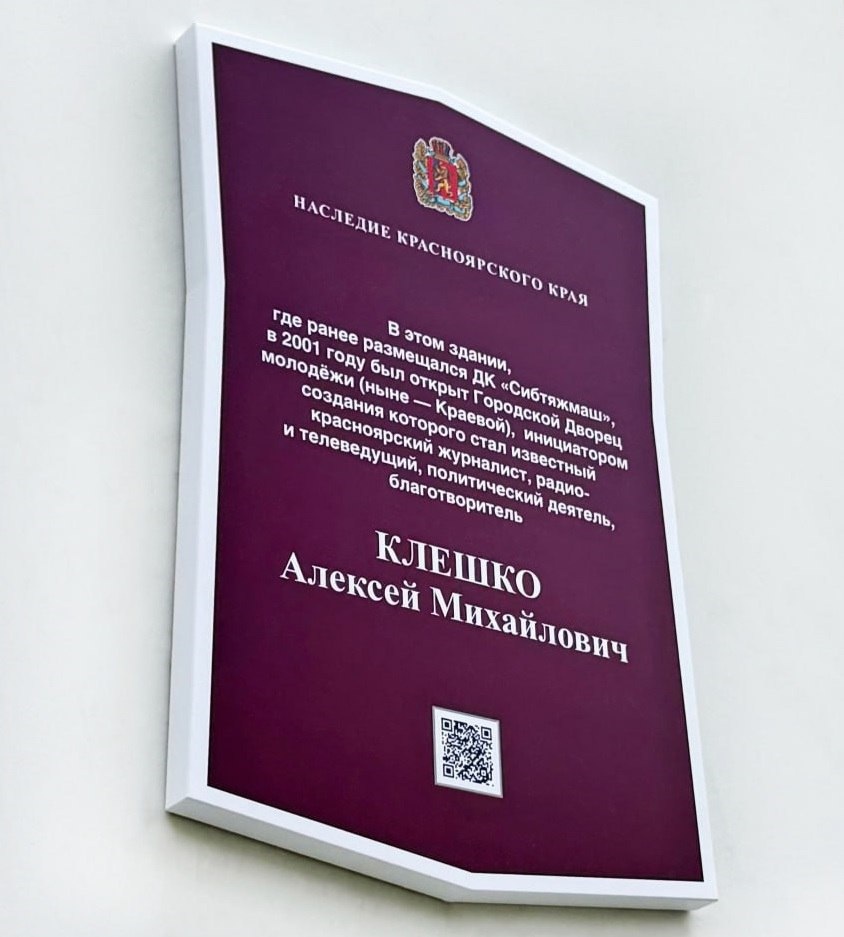 В Красноярске установили мемориальную доску в память об Алексее Клешко На здании бывшего ДК «Сибтяжмаш», где сейчас находится арт-резиденция «Каменка», установлена памятная табличка в честь Алексея Клешко. Именно он в 2001 году инициировал создание Городского дворца молодёжи - первого крупного молодёжного культурного центра в городе. Алексей Михайлович был широко известен как журналист и телеведущий, общественный и политический деятель. Он был депутатом Законодательного Собрания Красноярского края четырёх созывов (с 2001 по 2021 год), возглавлял парламентскую фракцию «Единой России», а с 2007 года занимал пост первого заместителя спикера краевого парламента. Подробнее: https://krasrab.ru/news/society/47876