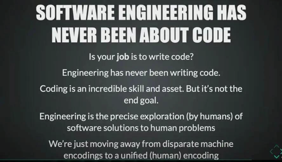 Гроув проводит параллели между инженерами, продукт-менеджерами и законодателями: все они работают со спецификациями, только одни — с кодом, другие — с продуктом, третьи — с законами. В будущем, возможно, эти роли будут всё больше пересекаться.