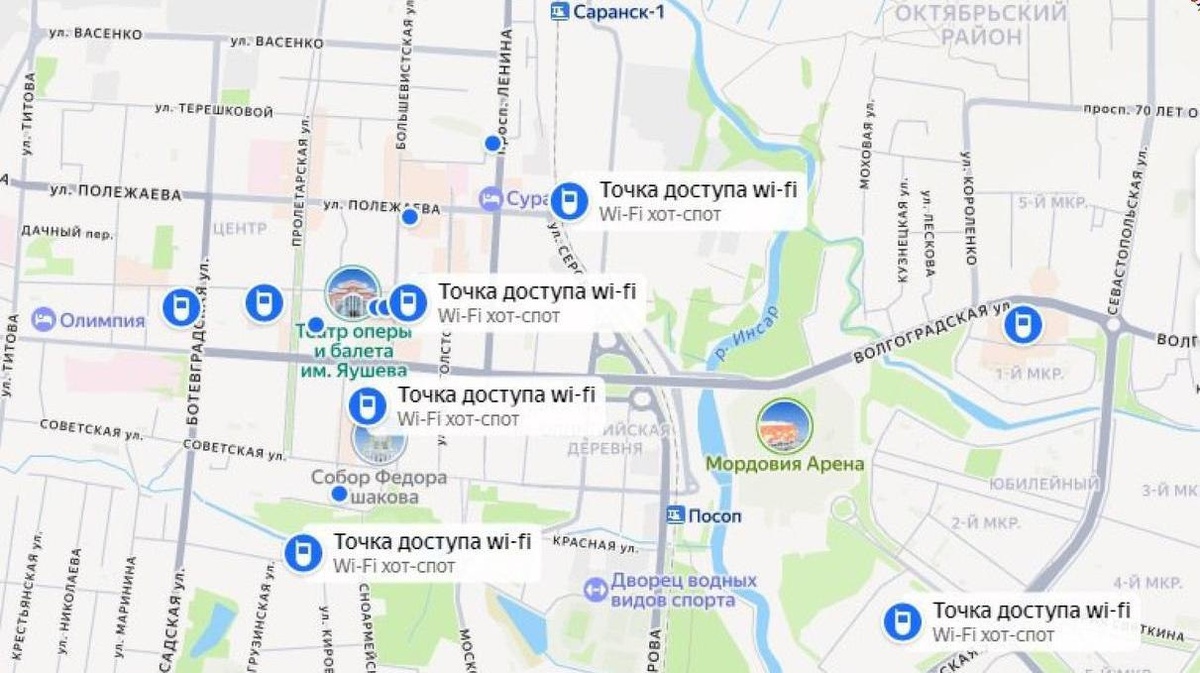 Точки доступа Wi-Fi в Мордовии появились на «Яндекс Картах