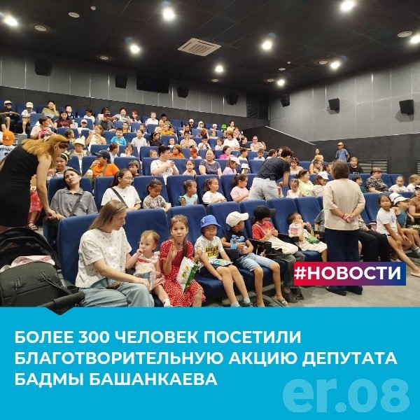 В период с 18 по 20 июля проходила акция по бесплатному показу мультика для детей от депутата Государственной Думы Российской Федерации, координатора направления «Здоровье человека» Народной программы «Единой России» Бадма Башанкаева. На этот раз жители смогли посмотреть премьеру мультфильма «Лея и волшебная карта» в кинотеатре «Октябрь». Среди зрителей были дети из Элисты, поселков Аршань, Нарн Убушуев Эренцен, житель поселка Аршан: «Благодарим за организацию бесплатного показа мультфильма нашего депутата Бадму Башанкаева. Понравилось мне, моей бабуле и моему маленькому братику!» Директор СОШ №15 Байрта Мукаева отметила, что время прошло волшебно, дети были рады скрасить досуг в период летних каникул. Дети пришли со своими друзьями, родными. Сеанс прошел замечательно. Благодарим Бадму Николаевича за такие акции, ведь не всегда семьи могут позволить приобрести билеты на всех членов семьи, это хорошая и приятная поддержка для наших семей! Бадма Башанкаев: «Приятно видеть радостные ли