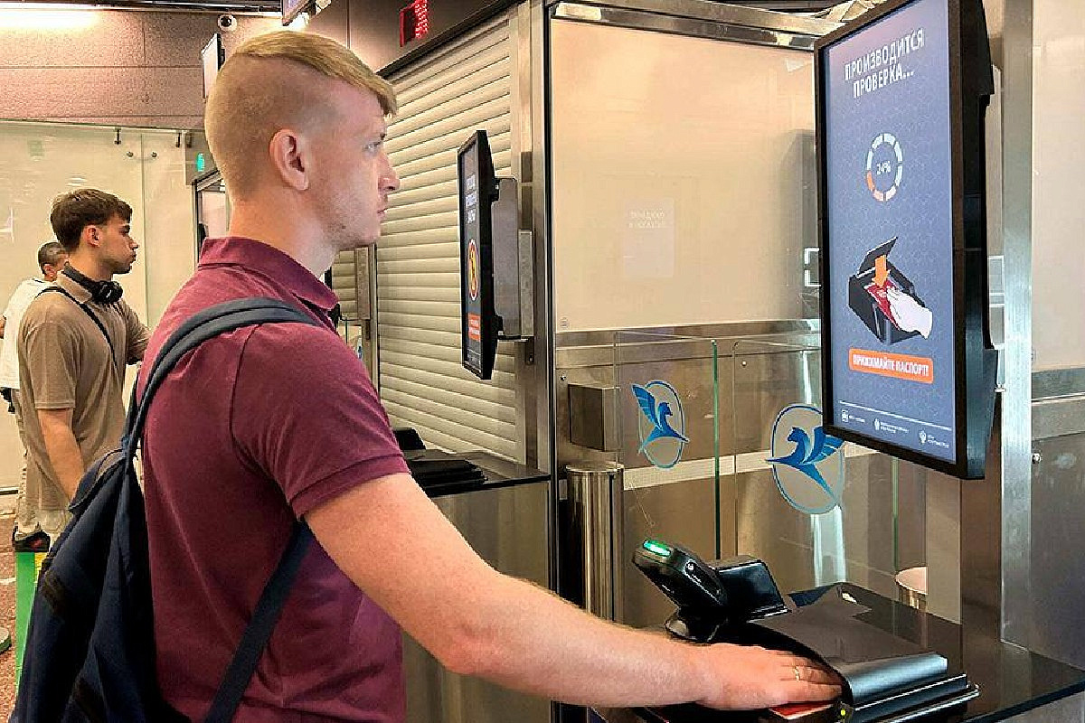 Новые биометрические терминалы позволяют пассажирам международных рейсов самостоятельно сканировать паспорт и отпечаток пальца, сокращая время процедуры до 30–45 секунд.