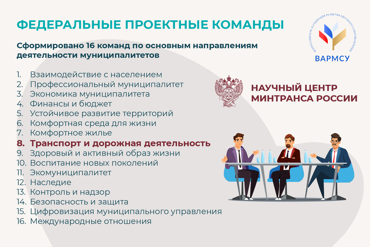 Одна из таких команд «Транспорт и дорожная деятельность» сформирована именно для того, чтобы транспорт в населённых пунктах стал более удобным, доступным и безопасным – без отрыва от ежедневных потребностей людей и с учётом специфики регионов.