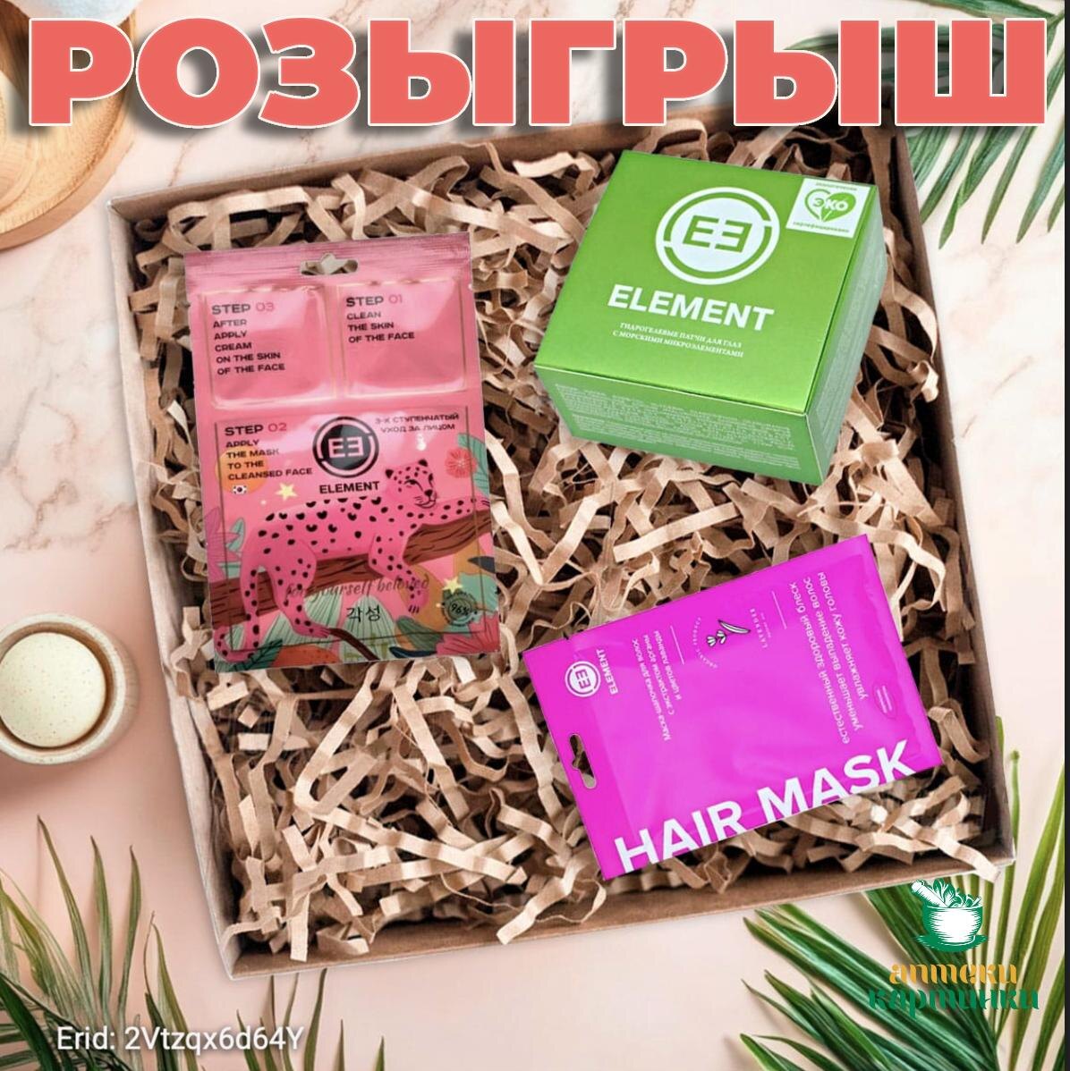 🎁 Розыгрыш ухода от Element — через викторину! Лето — отличное время, чтобы порадовать себя 💆♀️ А мы придумали, как сделать это ещё интереснее — с помощью игры! 📚 С 10 вопросами на тему ЗОЖ, аптек и красоты — отвечайте в комментариях и участвуйте в розыгрыше призов! Главный приз — 2 подарочных набора от Element: 💚 Гидрогелевые патчи для глаз с морскими микроэлементами 💜 Маска-шапочка с экстрактом арганы и лаванды 🌿 3-ступенчатая маска для лица: очищение, питание, восстановление Как участвовать? 🟢 Подпишитесь на наш канал 🟢 Прокомментируйте этот пост 🟢 Отвечайте на вопросы (один в день, начиная с завтра 12:00 МСК) 🟢 Напишите ответы в комментариях под каждым вопросом ✅ Все, кто правильно ответит минимум на 8 из 10 вопросов — участвуют в розыгрыше. Ответы фиксируются с помощью barkov.net 🎲 Розыгрыш идет по 31 июля включительно! 2 победителя выберем случайным образом 1 августа (в 12:00 МСК) 📍Участие могут принимать жители России. 🚚 Доставка по России — бесплатно, курьер