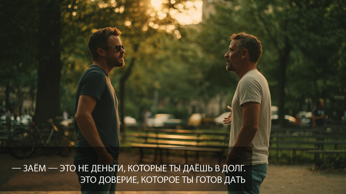 — Настоящий заём — это не деньги, которые ты даёшь в долг. Это доверие, которое ты готов дать взаймы даже после предательства.